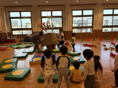 様々な遊具に興味を持って、登る、跳ぶ、くぐる、押す、ジャンプする等、全身を動かして遊ぶことを楽しんだ子どもたちです。