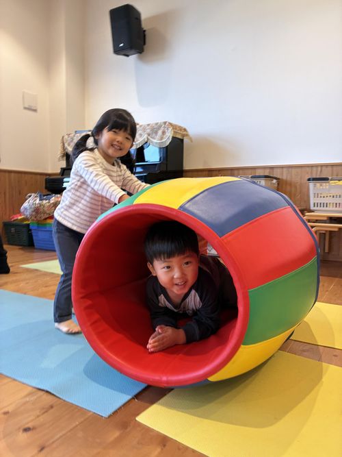 たくさんの遊具に目を輝かせながら、トンネルやジャンピングマット、橋渡りなどにチャレンジ!